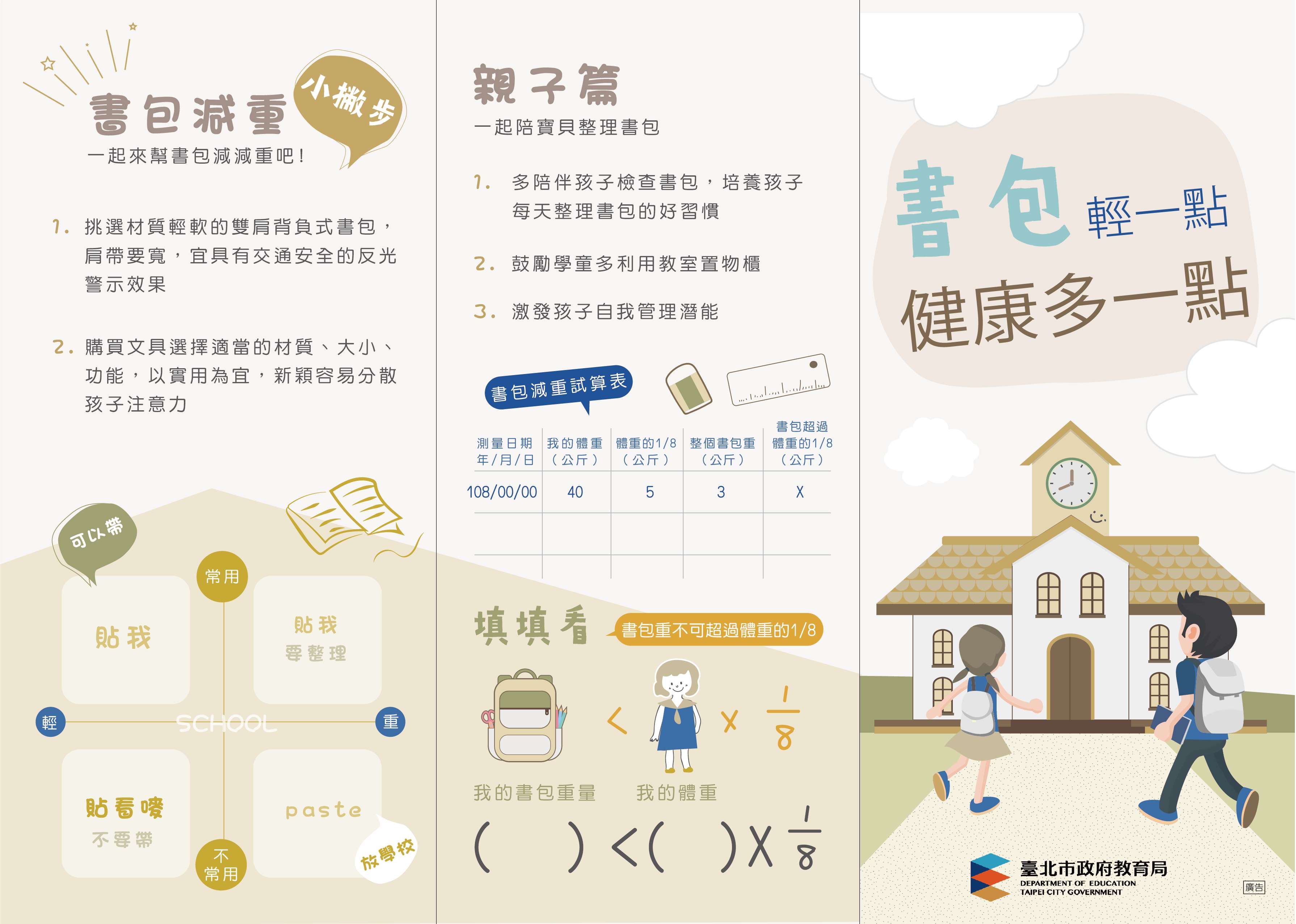 二、協助學童選購、檢查及整理書包,以共同落實書包減重理念。