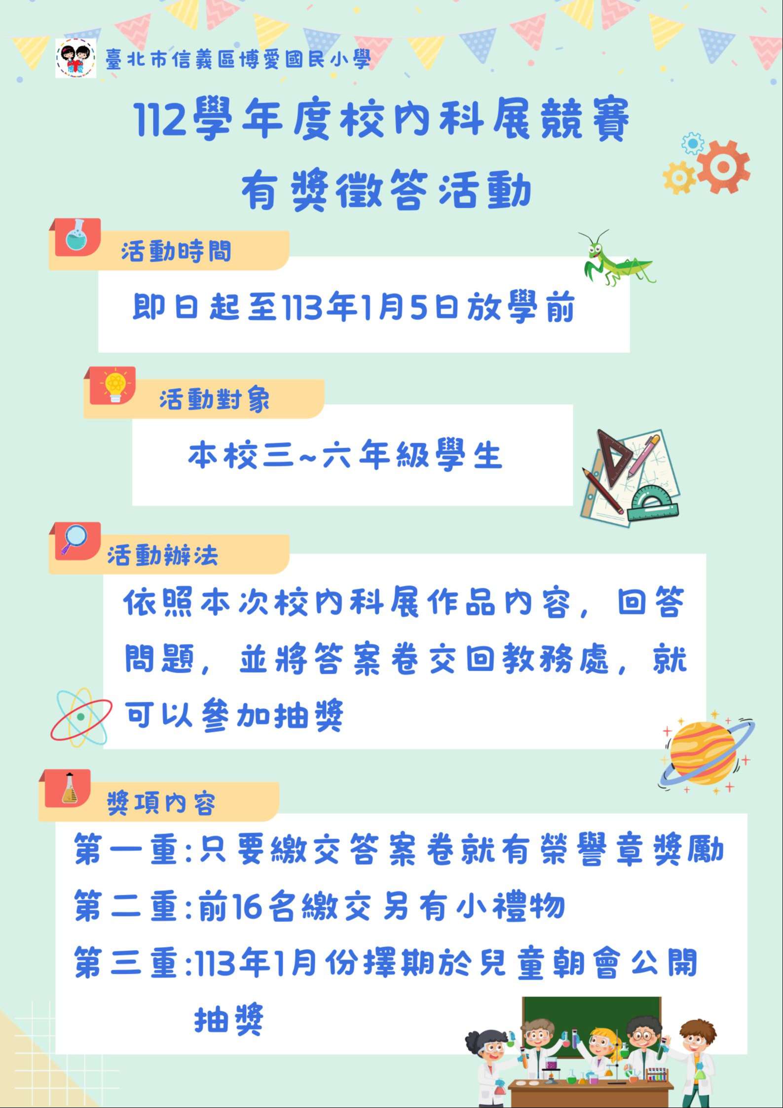 112學年度校內科展競賽有獎徵答活動開始了~