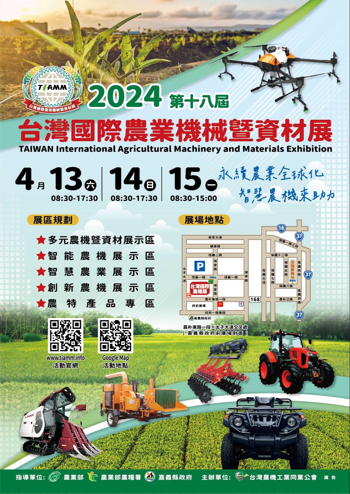 一、活動內容:展出智慧農業展示區、智能農機展示區、創新農機展示區、多元農機暨資材展示區及農特產品展示區。