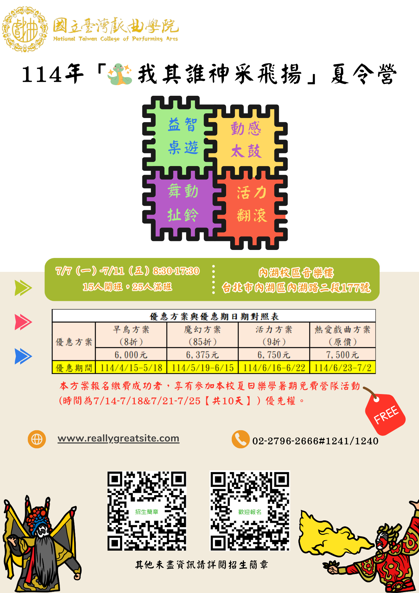 二、早鳥報名享更多優惠:詳見國立臺灣戲曲學院推廣教育報名頁面說明 (https://doce.tcpa.edu.tw/course/34/181)。