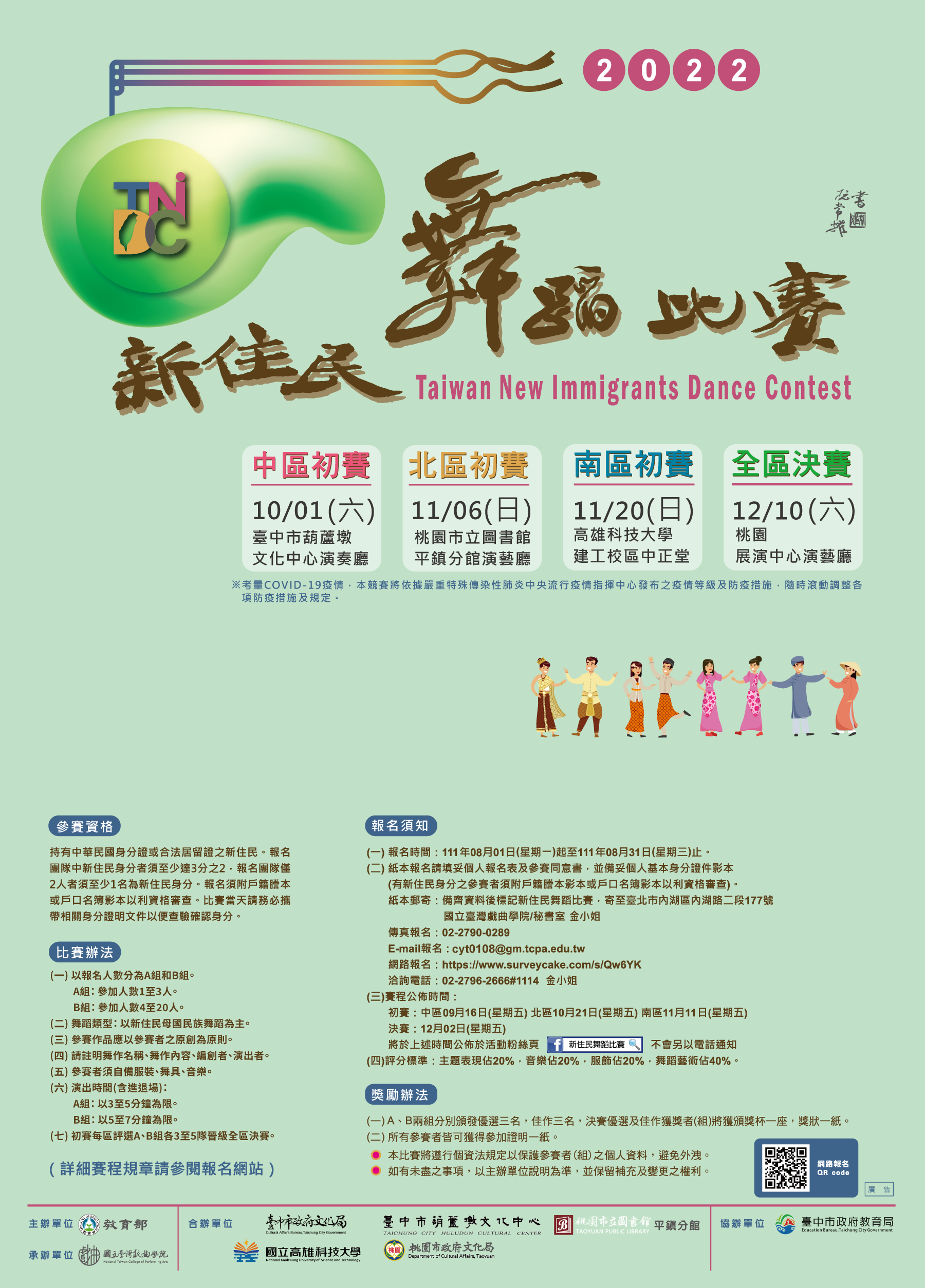 (五)更多詳細資料請參閱「2022新住民教育揚才計畫─第七 屆新住民舞蹈比賽」比賽辦法。