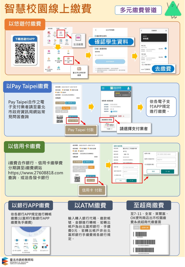 為鼓勵家長使用無現金繳費服務,悠遊卡公司亦提供相關獎勵活動:當月使用悠遊付每筆扣款享2%悠遊付回饋金,每月(當月1日至月底起算)每戶回饋上限新臺幣300元,活動期間每戶最高回饋新臺幣900元。