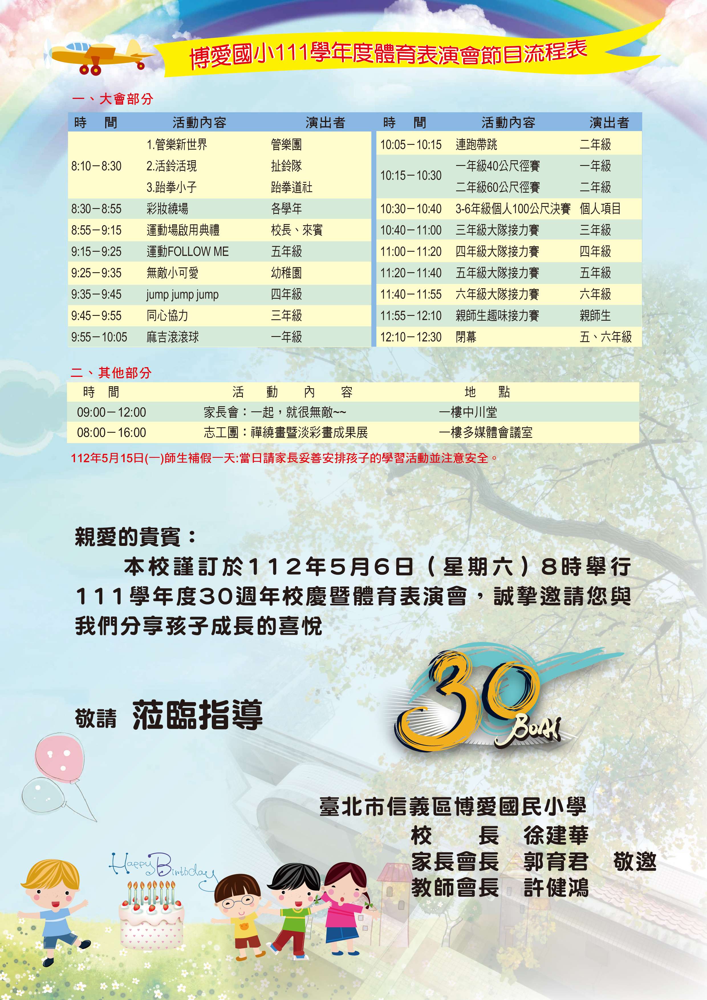 111學年度30週年校慶暨體育表演會邀請卡