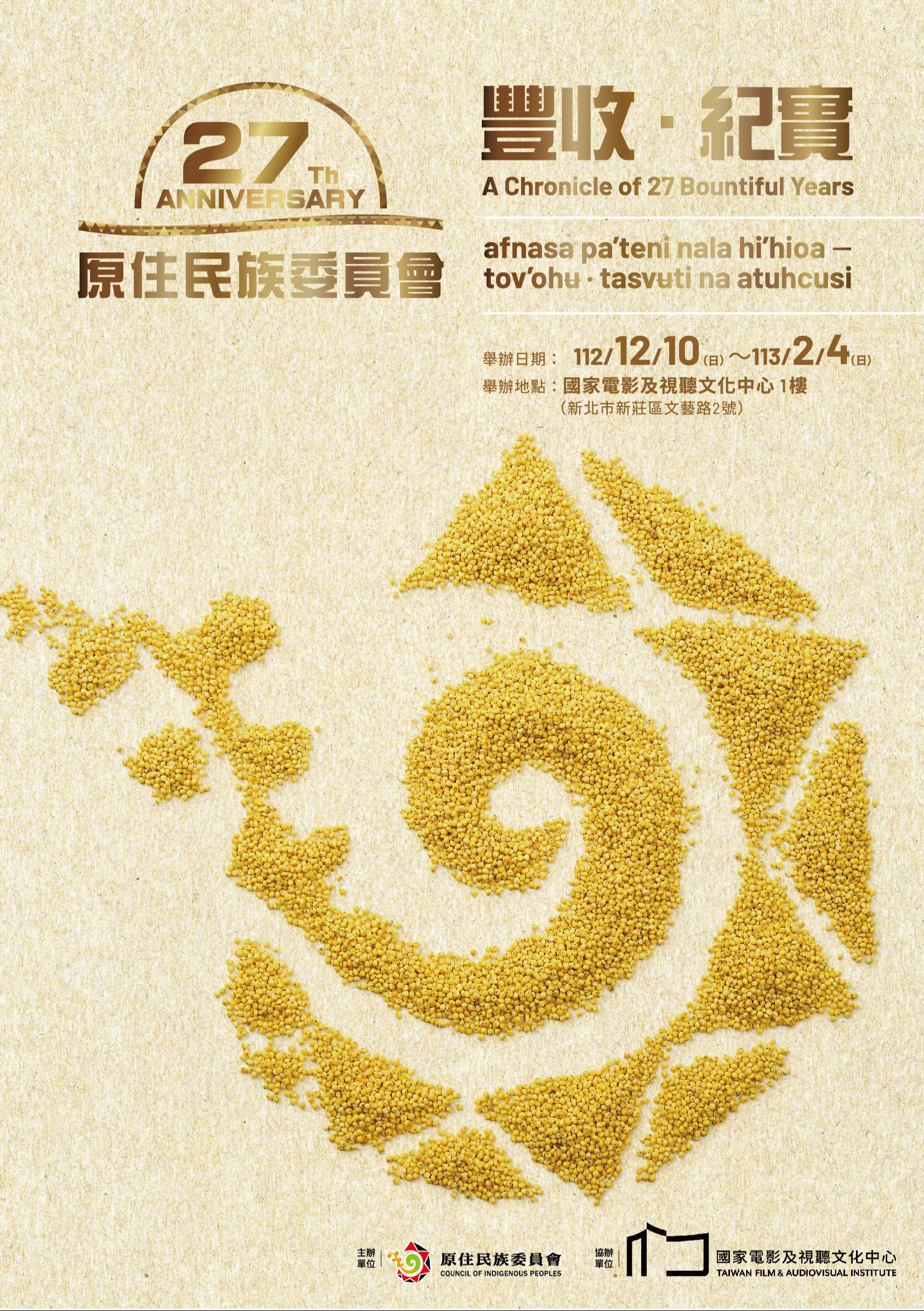 三、為促進主流社會對原住民族歷史脈絡與原權之認識,以及回顧原住民族委員會成立至今完成之各項重大施政里程碑及響應國際人權日之價值理念,原住民族委員會特辦理「豐收‧紀實-原住民族委員會成立27週年」特展,時間及地點如下: