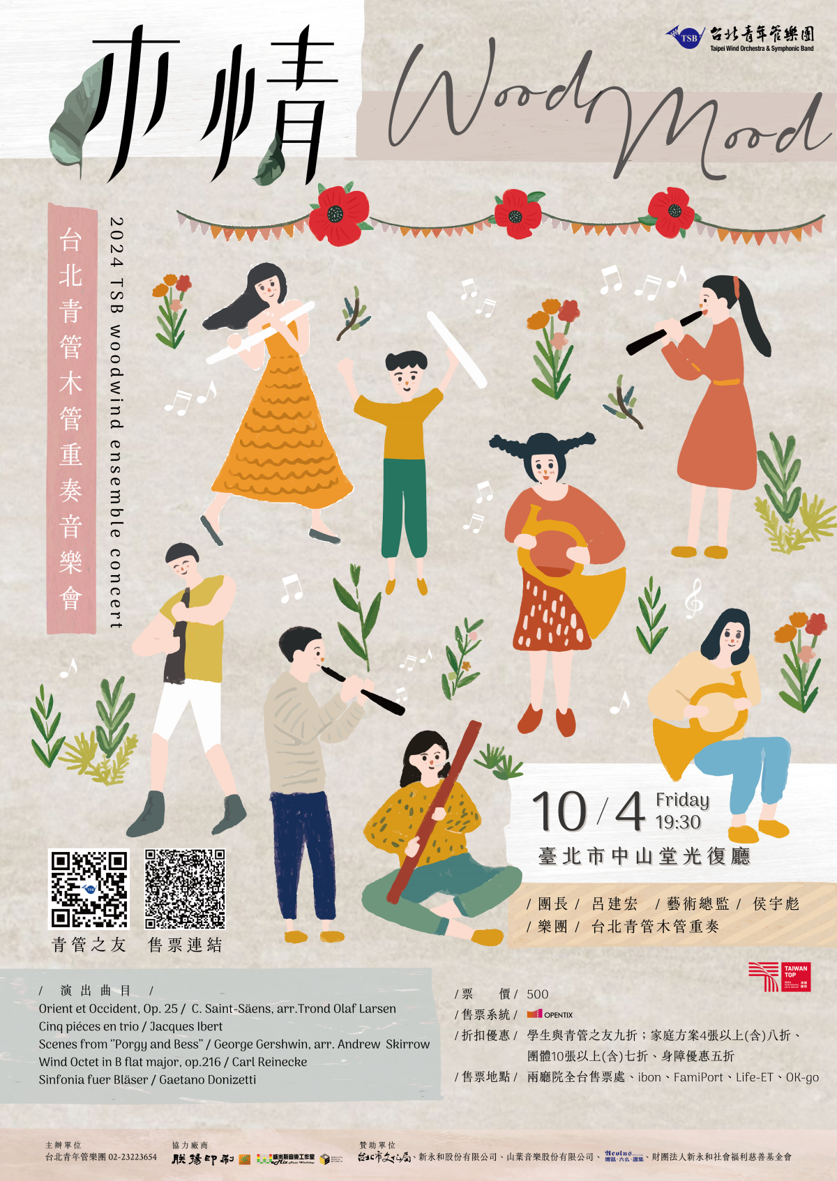 一、2024台北青管木管重奏音樂會,由國內音樂名家與台北青管老師團團員組成;帶來多首經典木管重奏之樂曲,曲目多元豐富,音樂悅耳動聽。