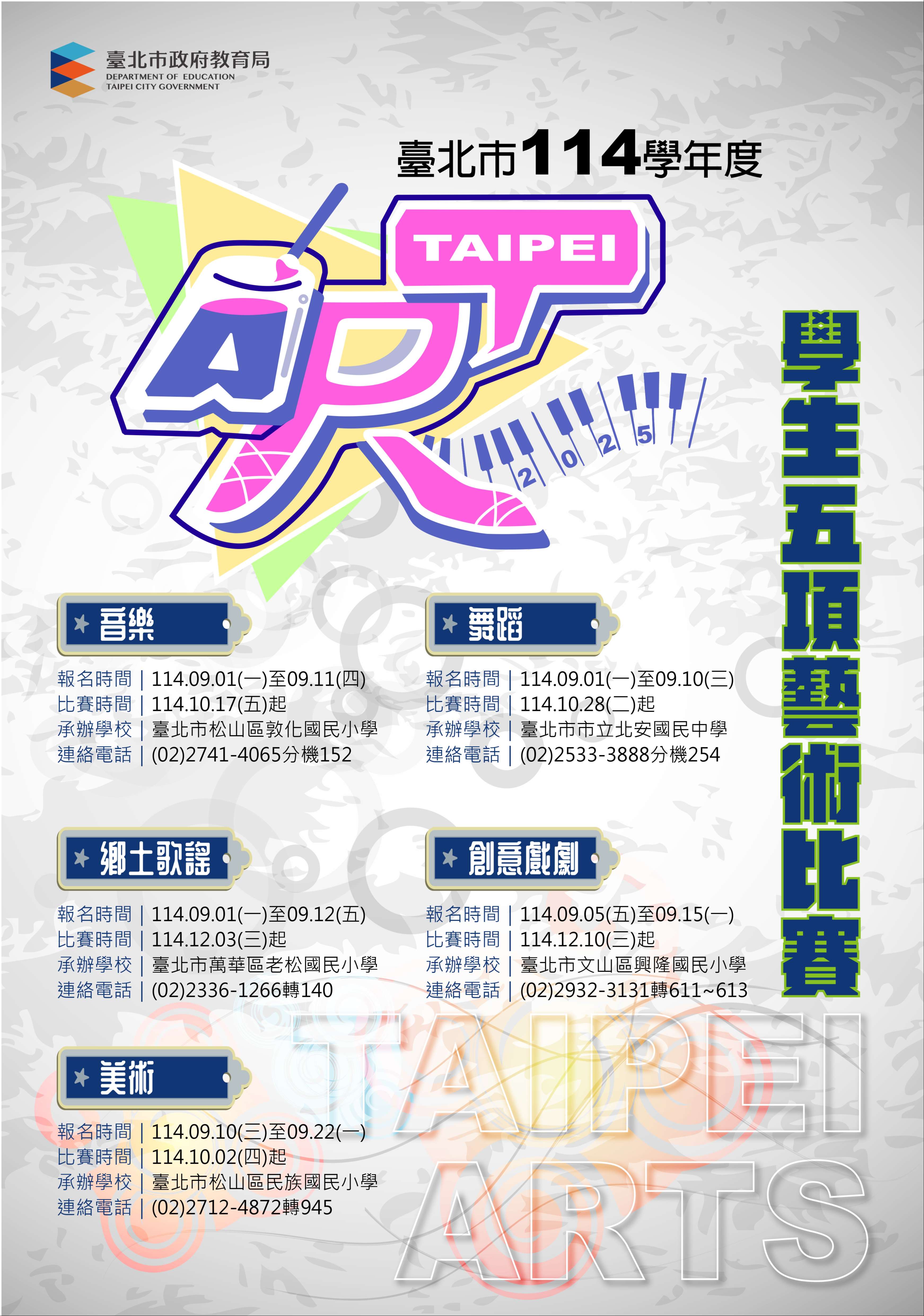 一、依據臺北市114學年度學生五項藝術比賽實施計畫辦理。