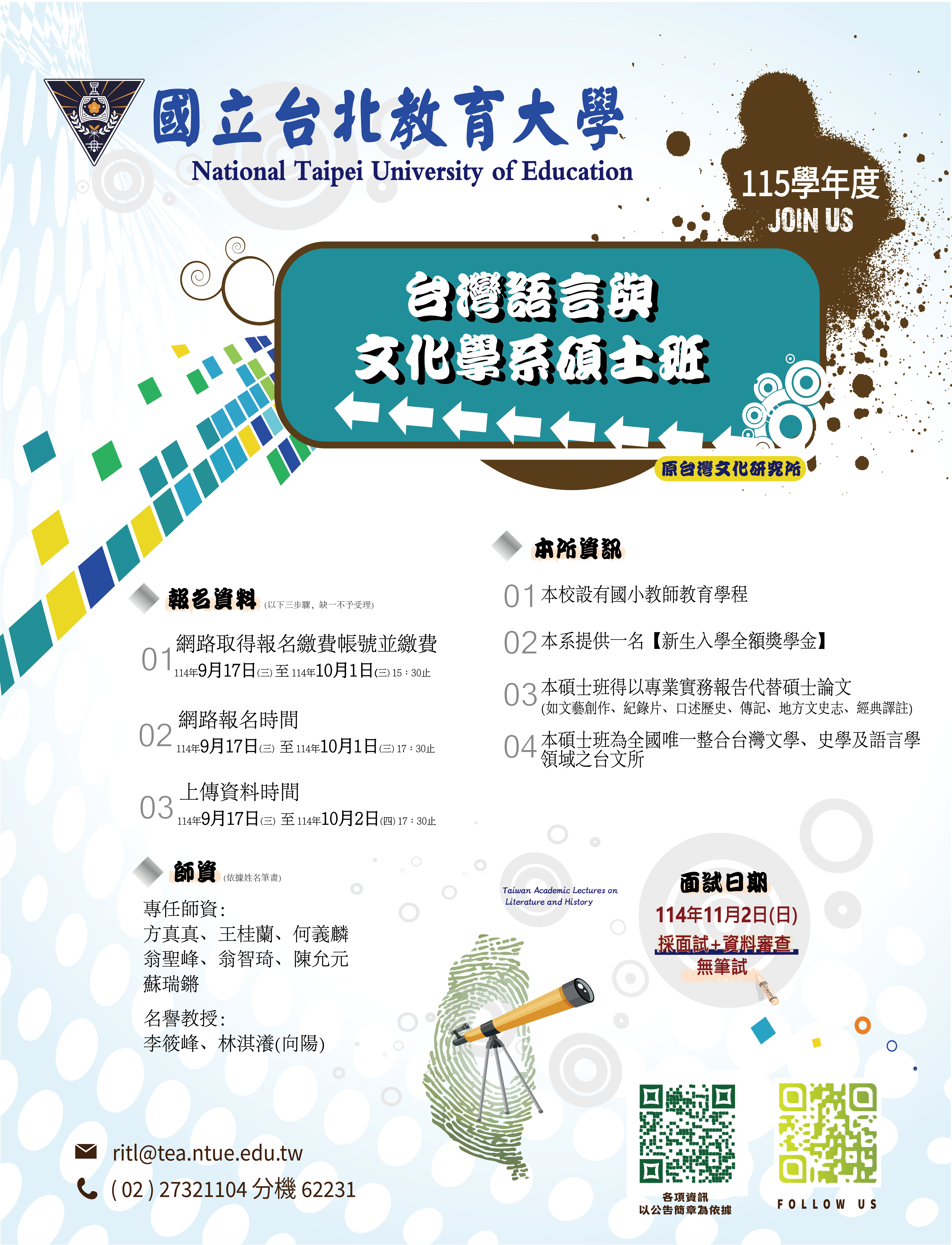 (六)簡章下載:http://exam.ntue.edu.tw/index_E.html