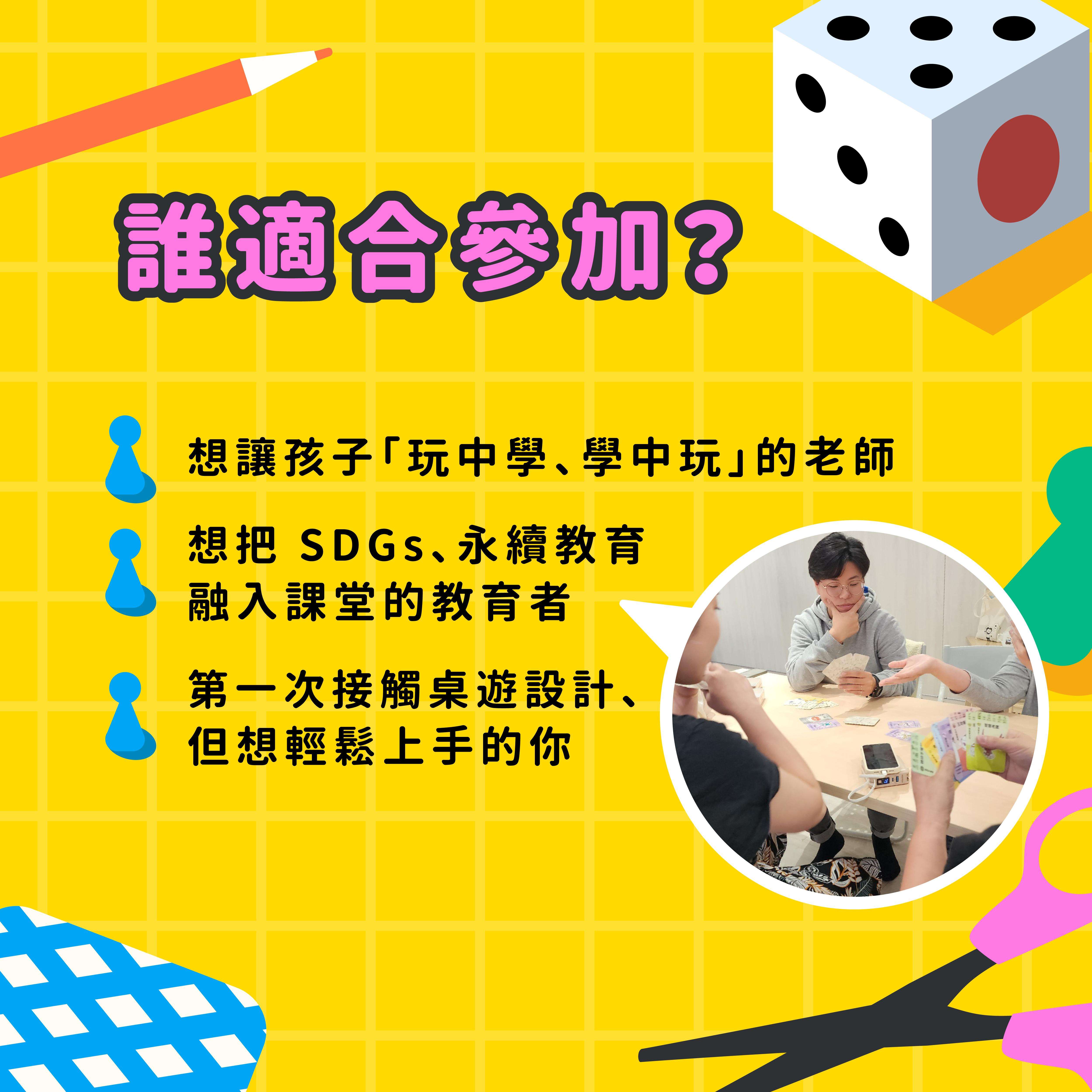 參與對象:小學階段教師、教育工作者,或有興趣導入遊 戲化教學、及情緒、霸凌、環境、責任消費等永續議題之 教育者