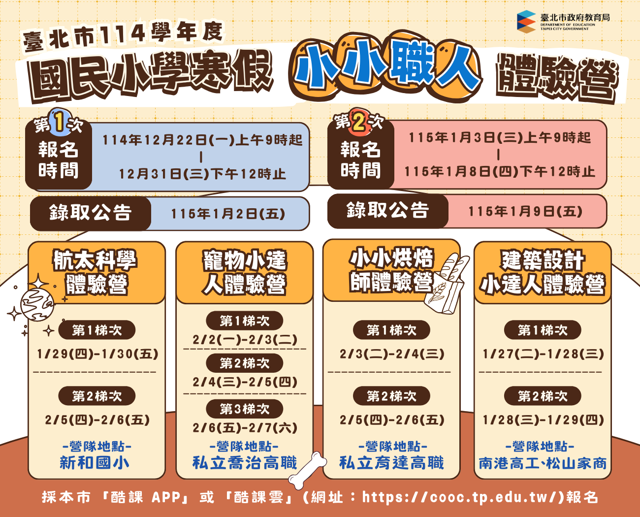 一、依據「臺北市114學年度國民小學寒假小小職人體驗營實施