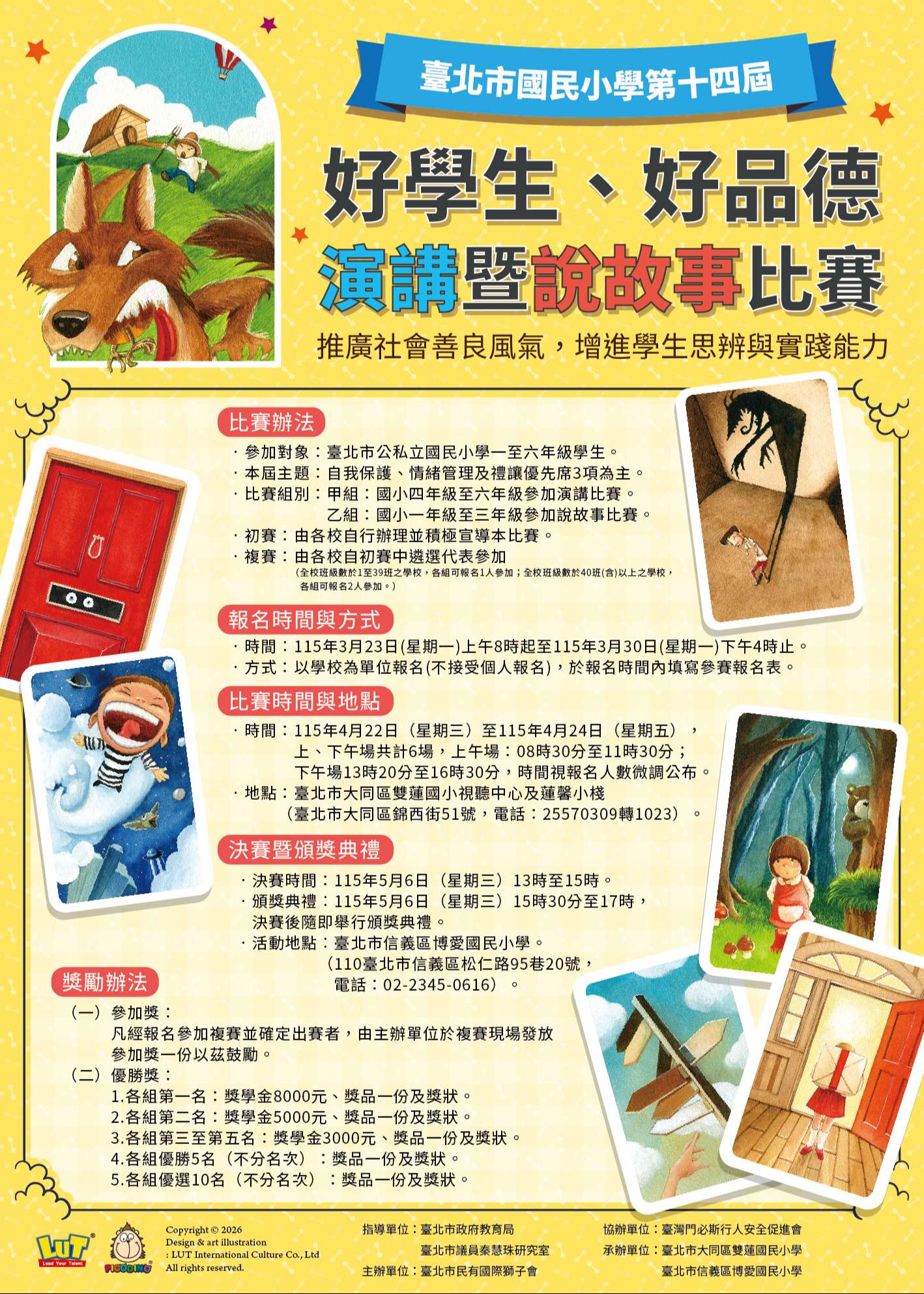 四、正式比賽時間:115年4月22日(星期三)至115年4月24日(星期五),比賽地點為臺北市大同區雙蓮國小(臺北市大同區錦西街51號)。