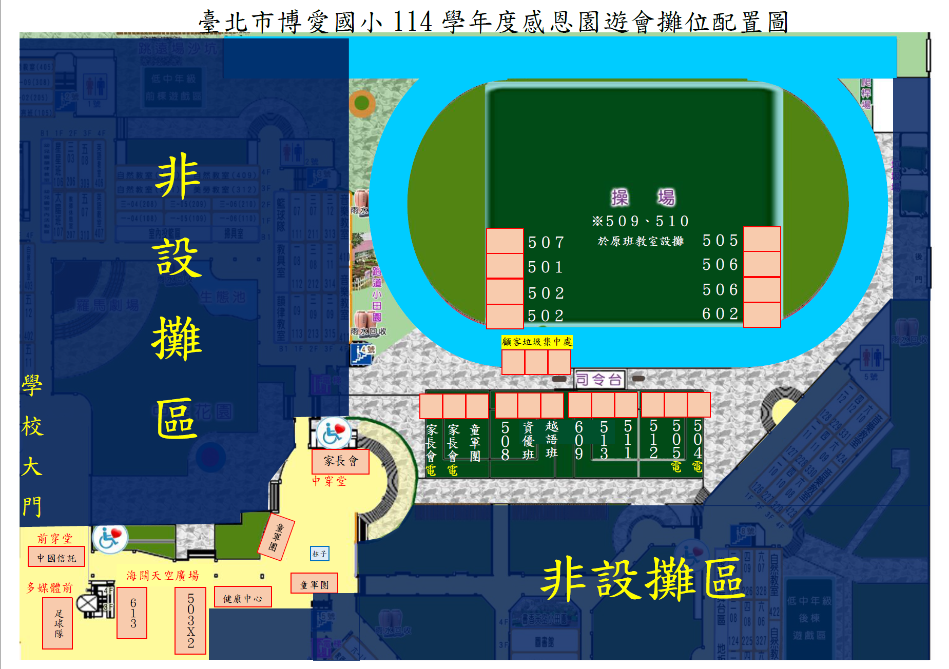 (雖然邀請卡上的親子園遊會時間表定9:30開始,但各攤位都希望能早點見到大家喔,大約8:30到9:00之間,各位貴賓就可以入校來逛逛囉!)